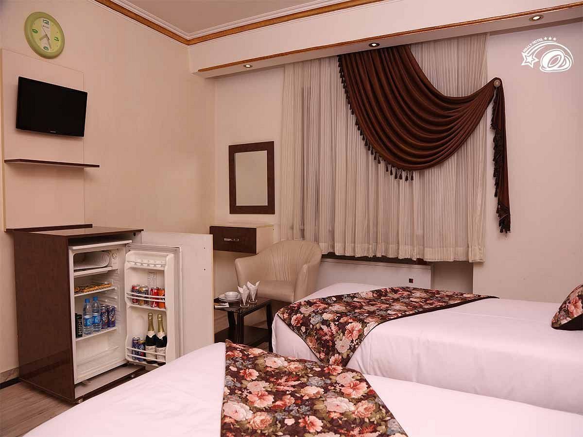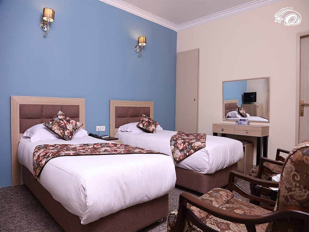 Этот отель один из старейших и наиболее зарекомендовавших себя отелей Тегерана, расположен в центральном районе города. Он начал свою деятельность в 1951 году и был отремонтирован в 2015 году для повышения качества обслуживания. Его многолетняя история и трехзвездочный рейтинг сделали его надежным местом размещения для гостей. Учитывая, что отель находится в зоне контроля дорожного движения, близость к станциям метро и автобусным остановкам делает поездки гостей удобными. В отеле пять этажей и 35 номеров. Вы можете выбрать для своего проживания одноместные номера, двухместные номера для одного человека, двухместные номера Твин, двухместные номера с 1 кроватью, трехместные номера и люксы с 1 спальней. В люксе есть спальня, гостиная и кухня, хотя приготовление пищи запрещено. Ресторан отеля, расположенный на цокольном этаже, вмещает около пятидесяти человек. Гости города, сочтут этот отель удобным выбором, предлагающим легкий доступ к важным офисам и организациям, обеспечивая при этом комфортное проживание.